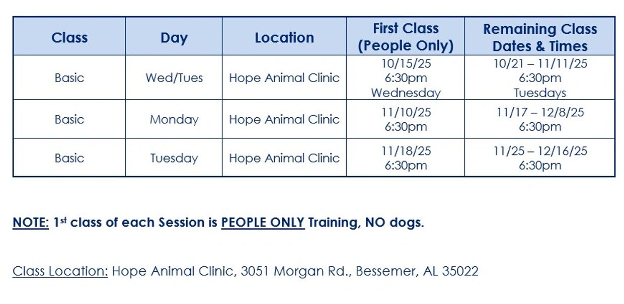 To reserve your space, fill out, scan and email your registration and vaccination forms to Dominion Dog Training prior to the first class.