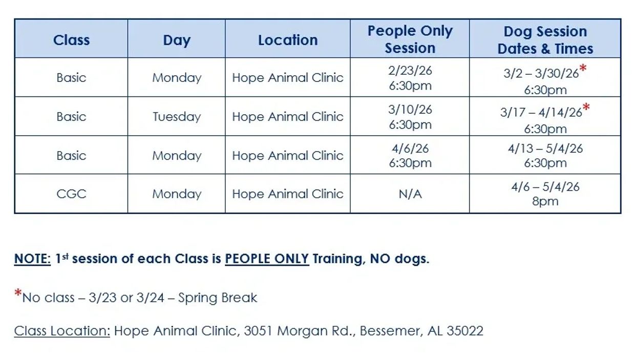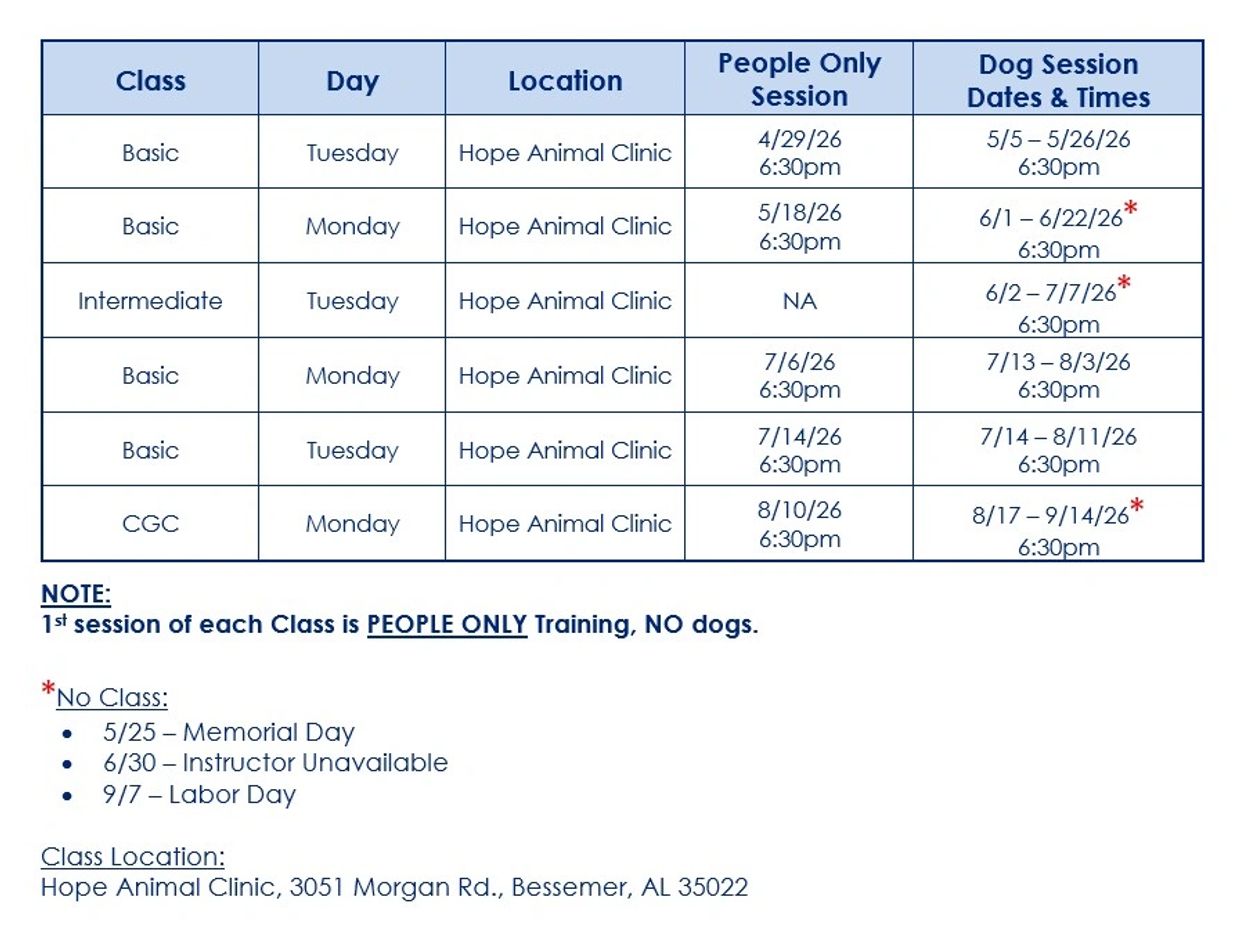 To reserve your space in our dog training classes, please fill out, scan, and email your registration forms and vaccination records to Dominion Dog Training before the first class. To access the necessary registration forms, simply click on the class name: